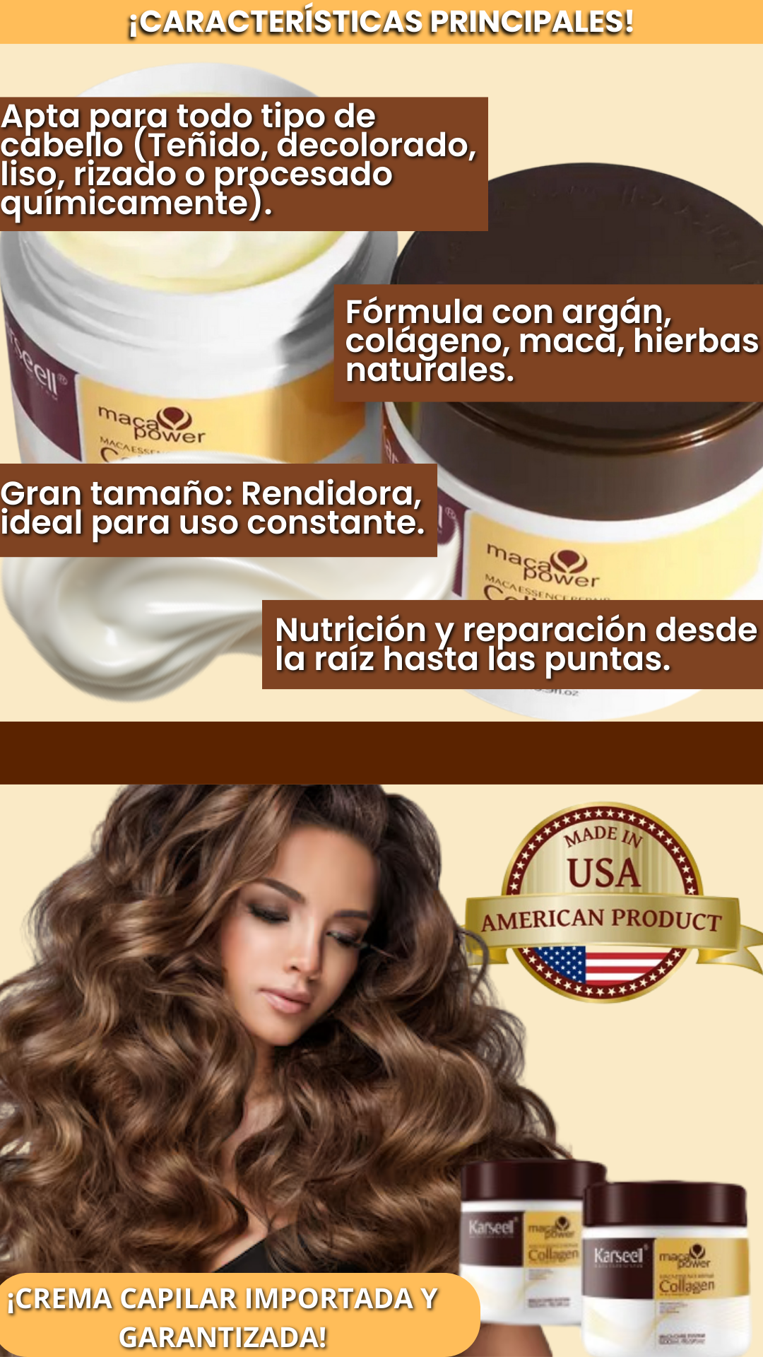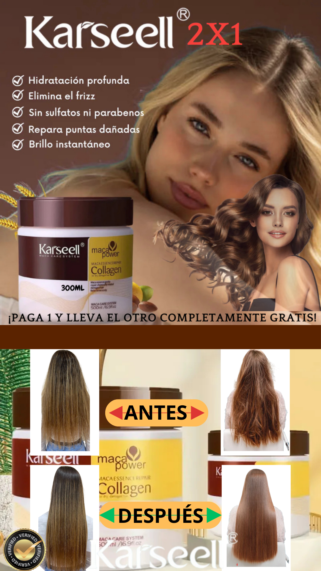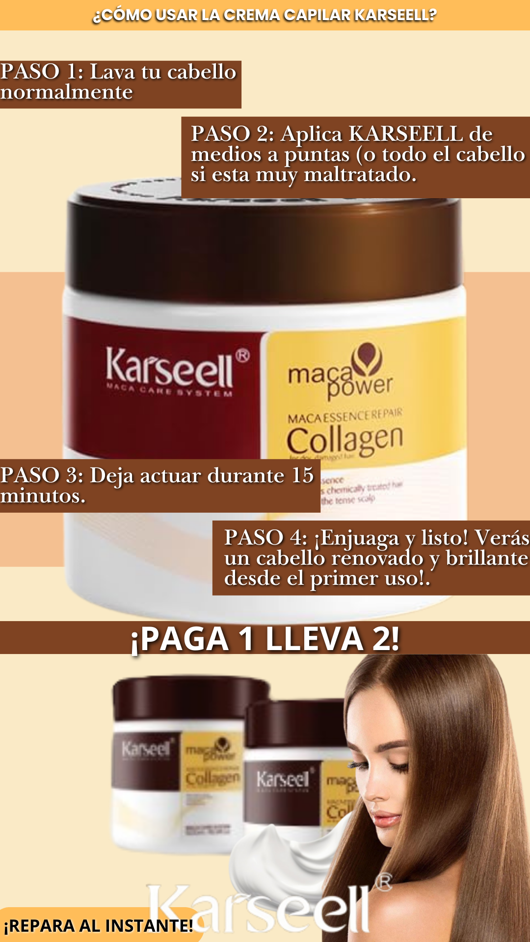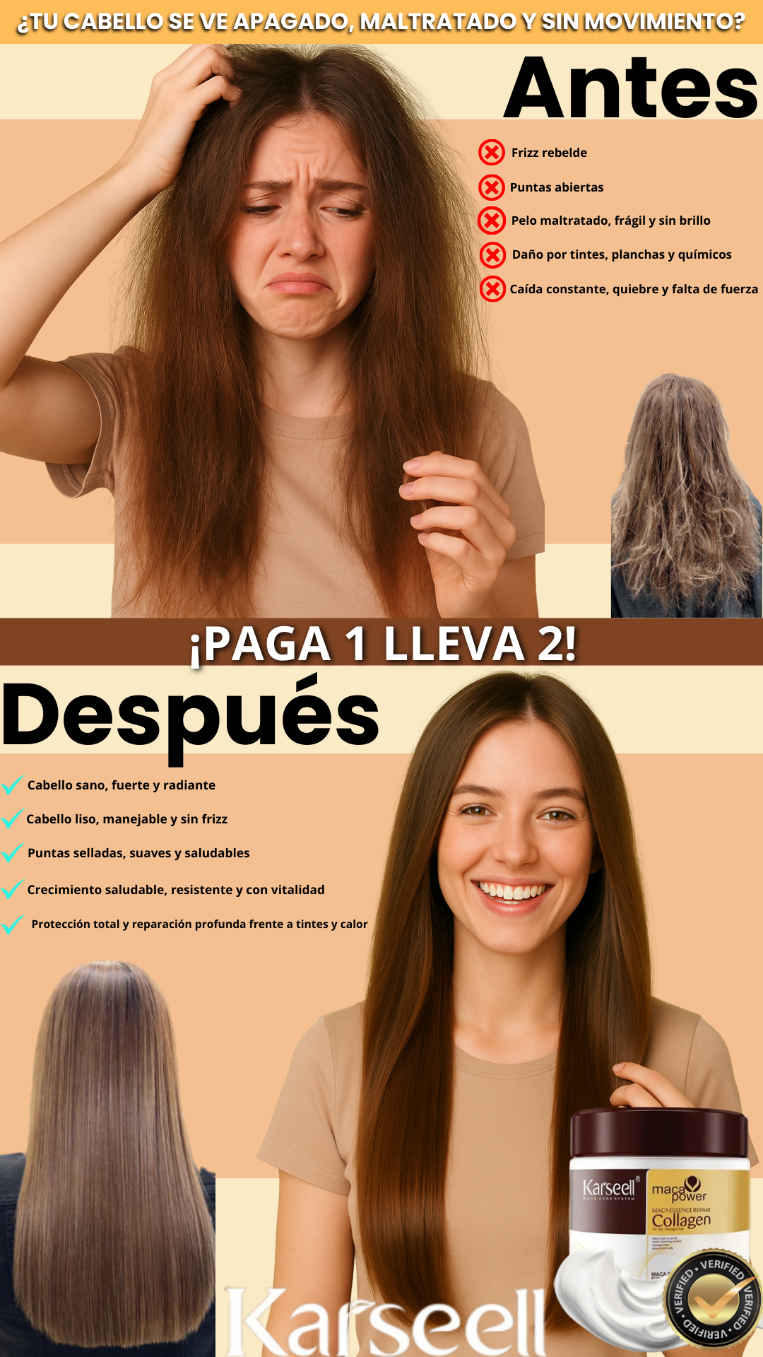 👉 Su fórmula con colágeno, argán y nutrientes naturales está diseñada para que notes tu cabello más suave, brillante y reparado desde el primer uso.